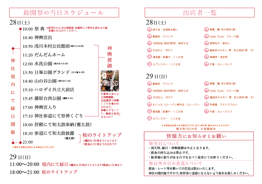 当日お参り(お祈り)の後は桜が咲く境内にて神賑行事を楽しまれてください。