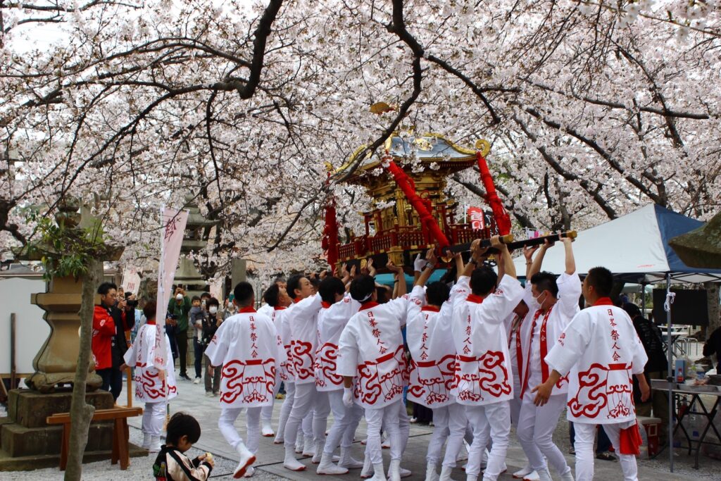 神輿渡御も行い、盛大にお祝いいたしますので、是非ご参拝ください。